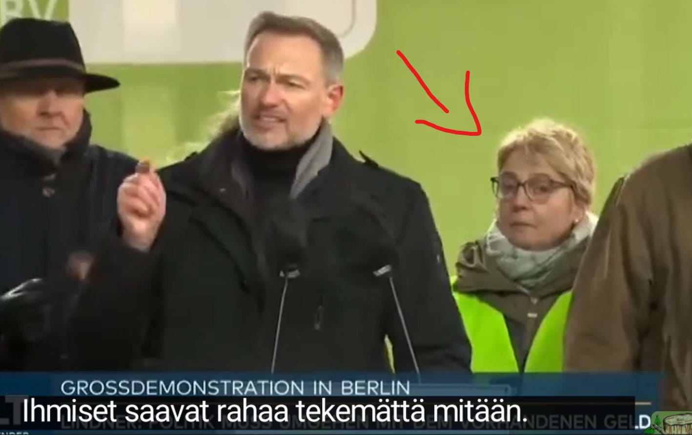 Lopuksi valtiovarainministeri Lindner siis joutui pakenemaan siitä huolimatta, että lupasi ihmisille heidän asettamistaan siirtolaisten edelle. Tyytymättömyys ns. eliittiin on nyt siis todella syvällä ja ero näkemysten välillä suuri. Joutuuko eliitti nyt hätäpäissään pyörtämään puheitaan? Lindnerin puheen aikana panin merkille taustalla seisovan naisen hämmästyksen valtiovarainministerin alkaessa puhua ilmaista rahaa saavista siirtolaisista.